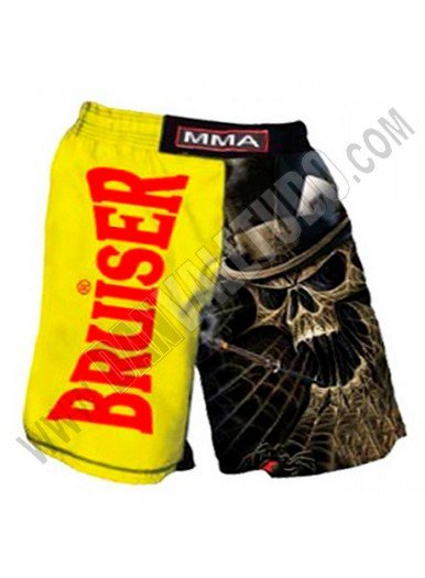 Bermuda de la marca Bruiser, que esta muy bien para entrenar Artes Marciales Mixtas, Grappling y otros deportes de contacto. Tienen serigrafia de alta calidad hecha mediante sublimacion, tiene aberturas laterales y cuenta con sistema flex para ofrecer un movimiento sin restricciones. Lleva cierre de velcro con cordon para un ajuste suave.
