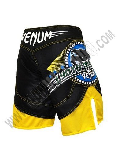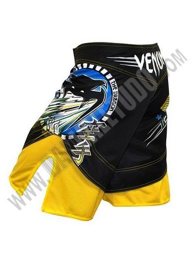 Bermuda Venum diseñadas para el retorno del dragón, son las que uso en su combate del UFC contra Ryan Bader. Ideal para entrenar Artes Marciales Mixtas, Grappling y Deportes de Contacto, también se han puesto de moda como pantalones para entrenar Body Combat. Bermuda muy ligera, fabricada con microfibra de alta calidad, extremadamente resistente a la rotura. Serigrafia de alta calidad, resistente a las fricciones del entrenamiento y a los lavados. Bermuda con aberturas laterales, refuerzos de las costuras exteriores de las piernas y nuevo corte anatómico. Cierre de velcro con cordón externo para un ajuste suave y cordón resistente en contacto con el velcro. Ver correspondencia de tallas.