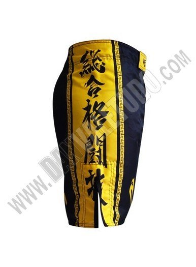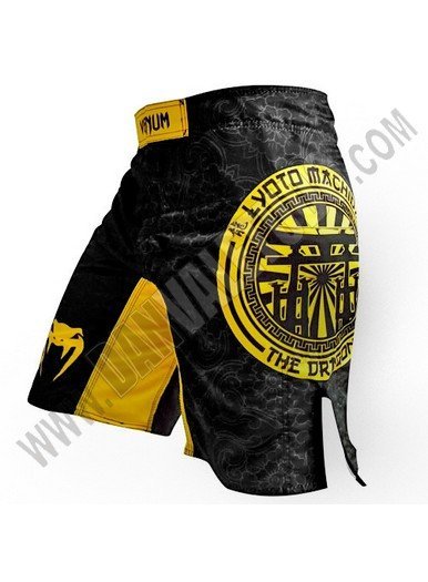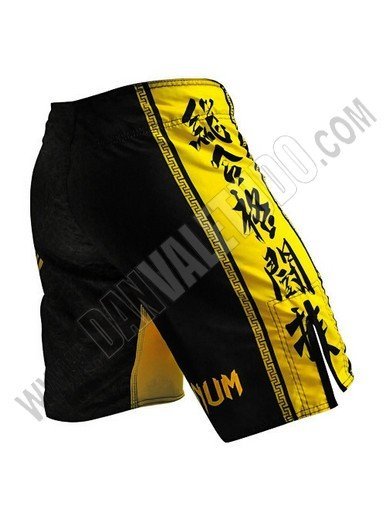 Bermuda Venum dedicada al famoso luchador de MMA Lyoto Machida. Ideal para entrenar Artes Marciales Mixtas, Grappling y Deportes de Contacto, también se han puesto de moda como pantalones para entrenar Body Combat. En la bermuda se destacan fuertes simbolos de la cultura japonesa, en la pierna izquierda se representa una "Torii" de la isla de Miyajima sublimado en colores negro y amarillo, y en la derecha se decora con un Kanji. Bermuda muy ligera, fabricada con microfibra de alta calidad, extremadamente resistente a la rotura. Serigrafia de alta calidad, resistente a las fricciones del entrenamiento y a los lavados. Bermuda con aberturas laterales, refuerzos de las costuras exteriores de las piernas y nuevo corte anatómico. Cierre de velcro con cordón externo para un ajuste suave y cordón resistente en contacto con el velcro. Ver correspondencia de tallas.