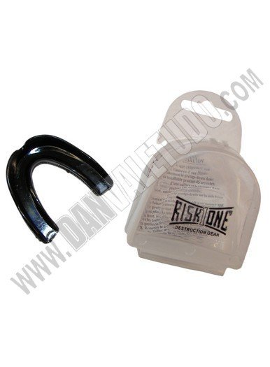Protector bucal de la marca Risk1One. Se ajustan a la dentadura calentandolo previamente con agua. Su diseño especial permite la libre respiración por la boca y una protección óptima de la mandíbula.