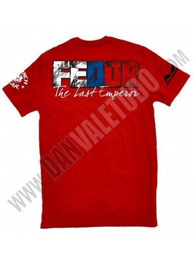 Camiseta de la marca Clinch Gear replica de la camiseta de Emelianenko Fedor "The Last Emperor" para el Grand Prix Strikeforce. Tiene la bandera rusa serigrafiada en la parte delantera junto con su famosa frase: "He who doesn't fall doesn't stand up" y su apodo El ultimo Emperador en la parte posterior.