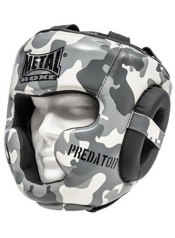 El casco está diseñado con protección de pómulos y barbilla. El corte proporciona un campo de visión de 180 °. La carcasa está diseñada con piel sintética y acolchado interior de espuma inyectada. Se ajusta mediante cordones en la parte superior de la cabeza y con cierre de velcro en la parte posterior de la cabeza. El casco tiene certificación CE (conforme a las normas europeas). Talla única.