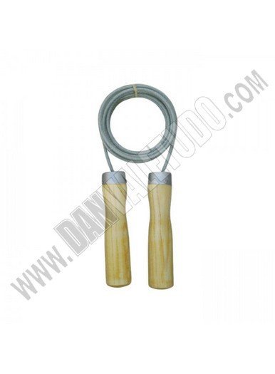Comba de acero para ejercitarse. Tiene mangos de madera y rodamientos para mejor movilidad de la cuerda.