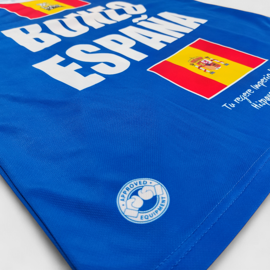 Su diseño exclusivo en color negro con detalles de la bandera de España y el texto “BOXEO ESPAÑA” aporta una imagen fuerte, profesional y representativa, ideal para boxeadores que buscan destacar.
