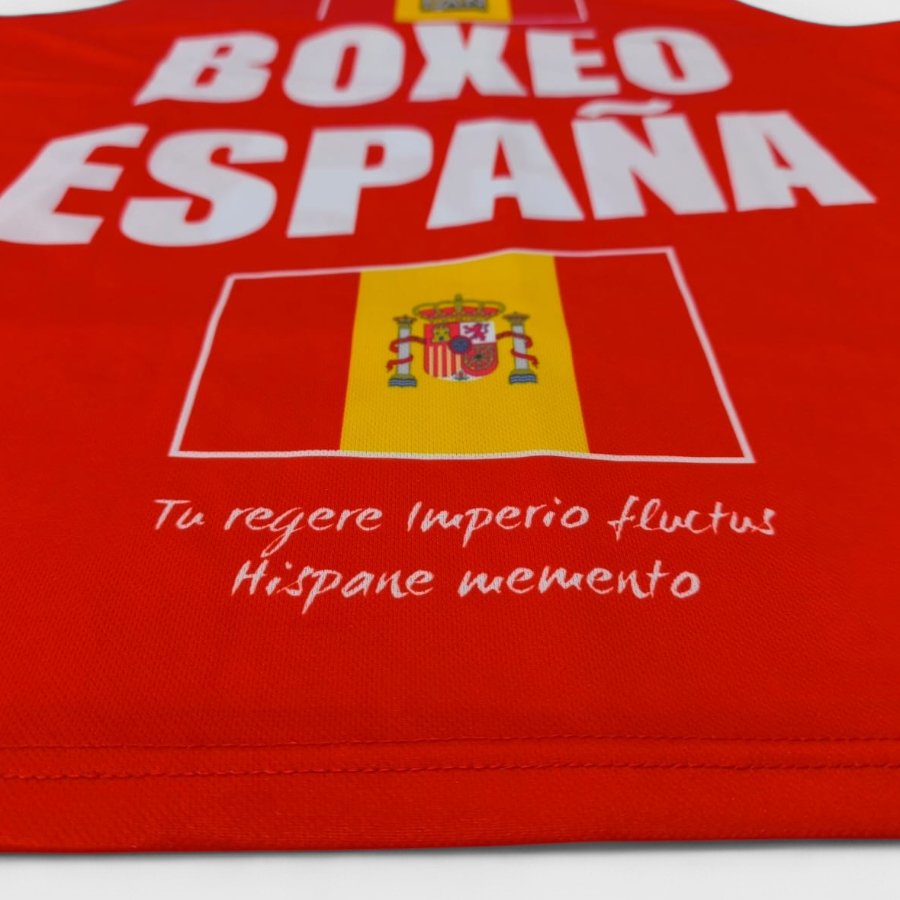 Su diseño exclusivo en color negro con detalles de la bandera de España y el texto “BOXEO ESPAÑA” aporta una imagen fuerte, profesional y representativa, ideal para boxeadores que buscan destacar.